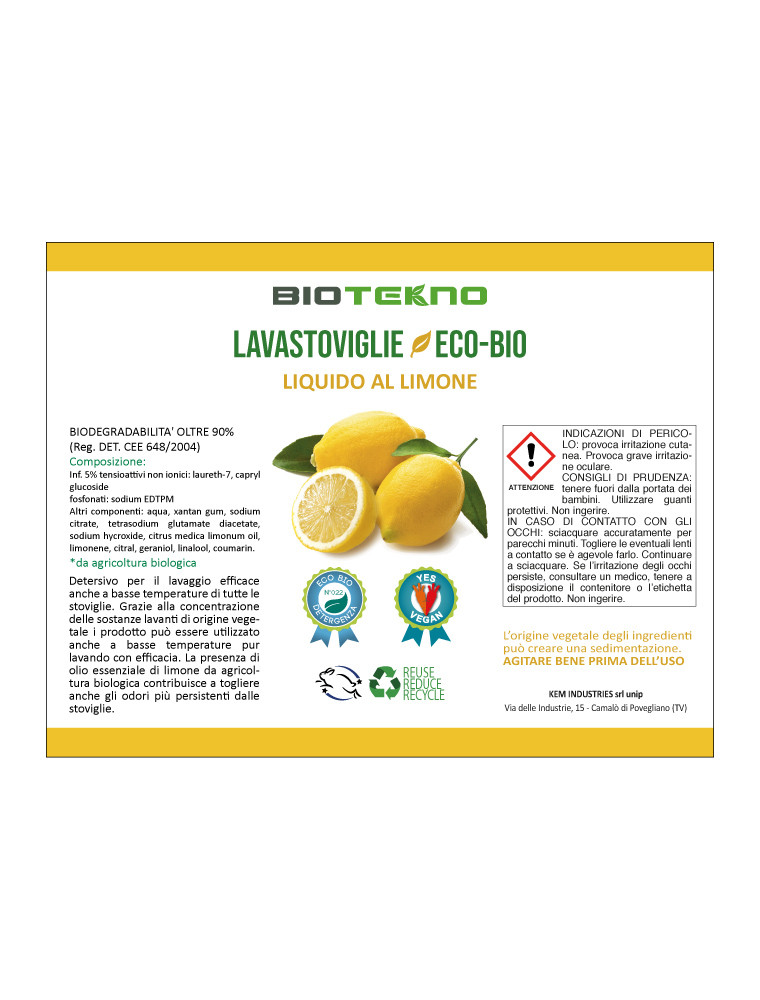 Adatto per il lavaggio con macchine lavastoviglie, questa formula particolarmente arricchita, garantisce un lavaggio completo con dosaggi molto bassi e, grazie all’origine vegetale delle sostanze lavanti, le stoviglie risultano perfettamente pulite anche con cicli a bassa temperatura. La presenza di olio essenziale di limone da agricoltura biologica contribuisce ad eliminare dalle stoviglie gli odori più persistenti.