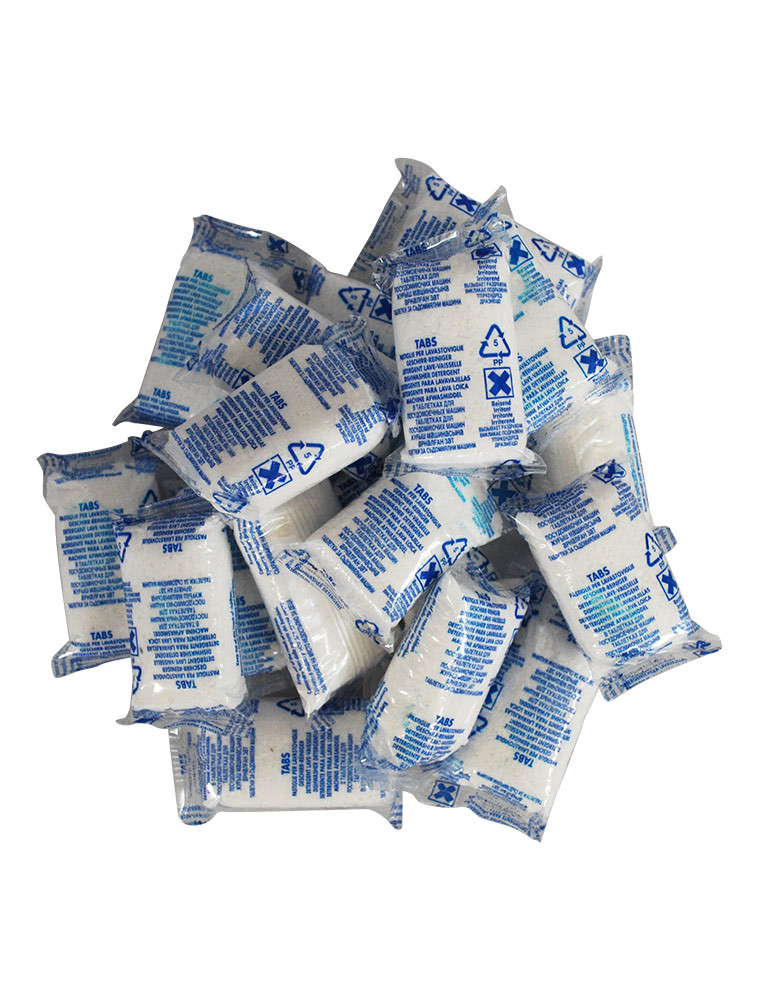 Sette funzioni in uno: pre-trattante, detergente, brillantante, funzione del sale, funzione splendi acciaio, funzione salva-vetro, azione pulente già a 40°. Non lascia residui in lavastoviglie.